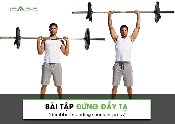 2. Bài tập đứng đẩy tạ dumbbell (dumbbell standing shoulder press)